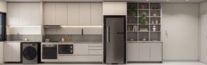 Apesar do tamanho, a funcionalidade não é sacrificada. Cozinhas compactas são equipadas com eletrodomésticos modernos e soluções de armazenamento inteligentes, tornando o ato de cozinhar prático e prazeroso.