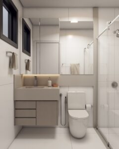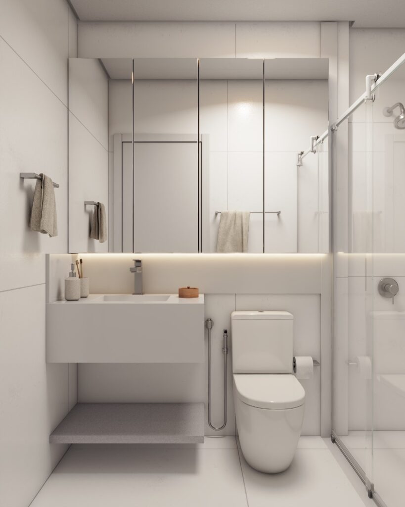 Banheiros bem projetados otimizam cada espaço, oferecendo conforto e praticidade.
