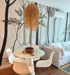 O design interior foi inspirado pela decoração escandinava, conhecida por sua simplicidade, minimalismo e funcionalidade, e foi harmoniosamente combinado com elementos boho para criar um ambiente único e autêntico. A mistura desses dois estilos resultou em um espaço acolhedor e cheio de personalidade, que promove um verdadeiro sentimento de pertencimento.